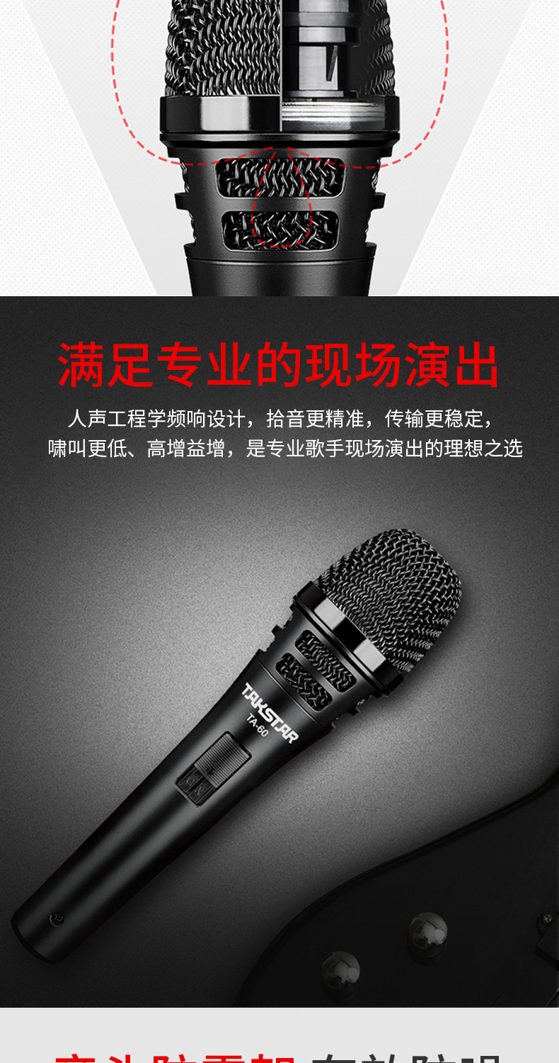 得胜(TAKSTAR) TA-60 KTV有线麦克风家用功放音响卡拉OK唱歌户外演唱主持演讲动圈话筒 TA-60/专业级