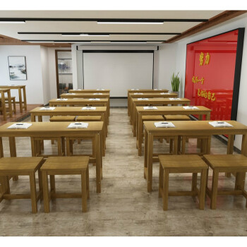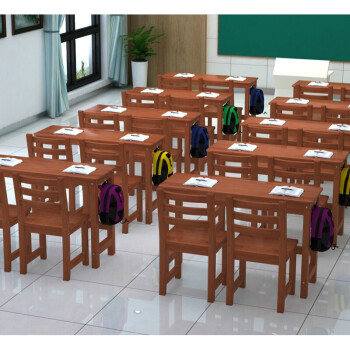 中小学生实木课桌椅 单双人培训桌辅导班桌子学习桌写字桌书法桌 原木色60*40*74加固型 红棕色120*40*74加固型