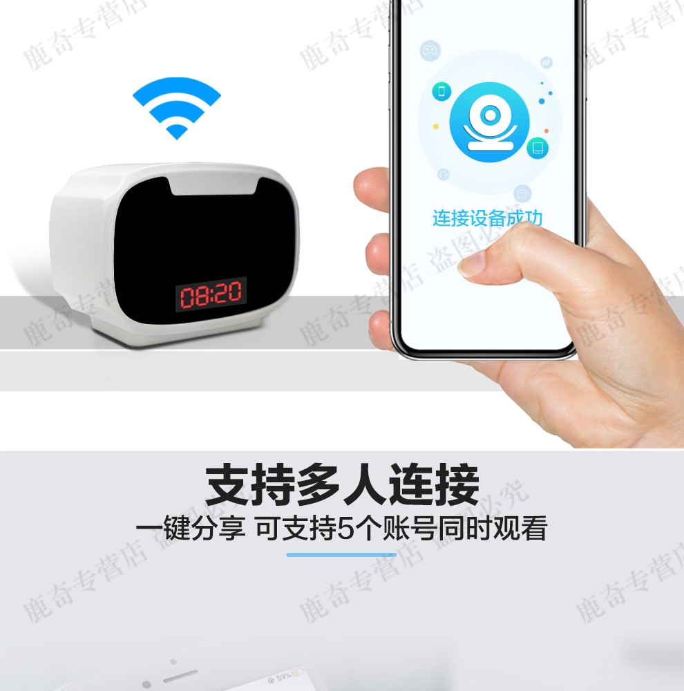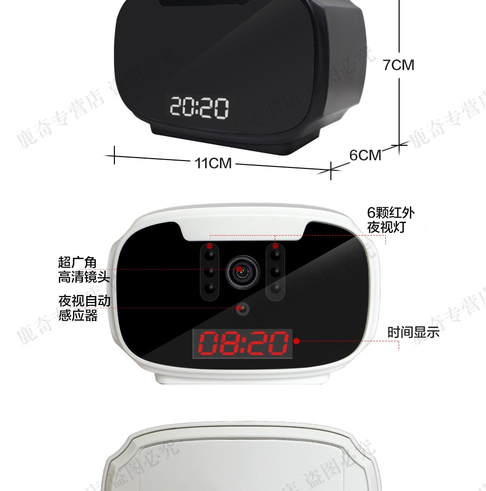 鼎曦智能wifi电子时钟远程小巧摆件监控摄像机无线小型摄像机手机远程夜视摄像头网络家用室内高清监视器 智能高清wifi款 高清128G版
