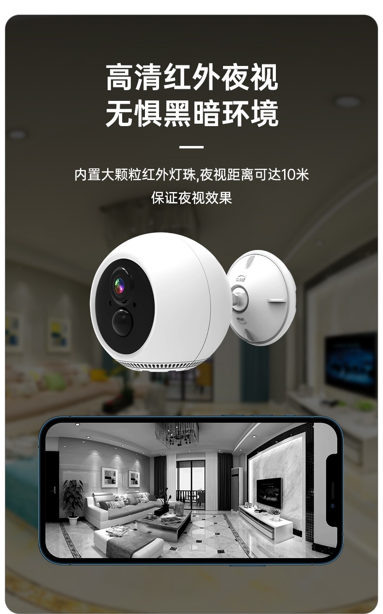 HKNA无线电池摄像头无网络手机远程室外免插电户外太阳能监控超长待机 免插低功耗摄像头【待机180天+超清】 32GB 3MP 4mm